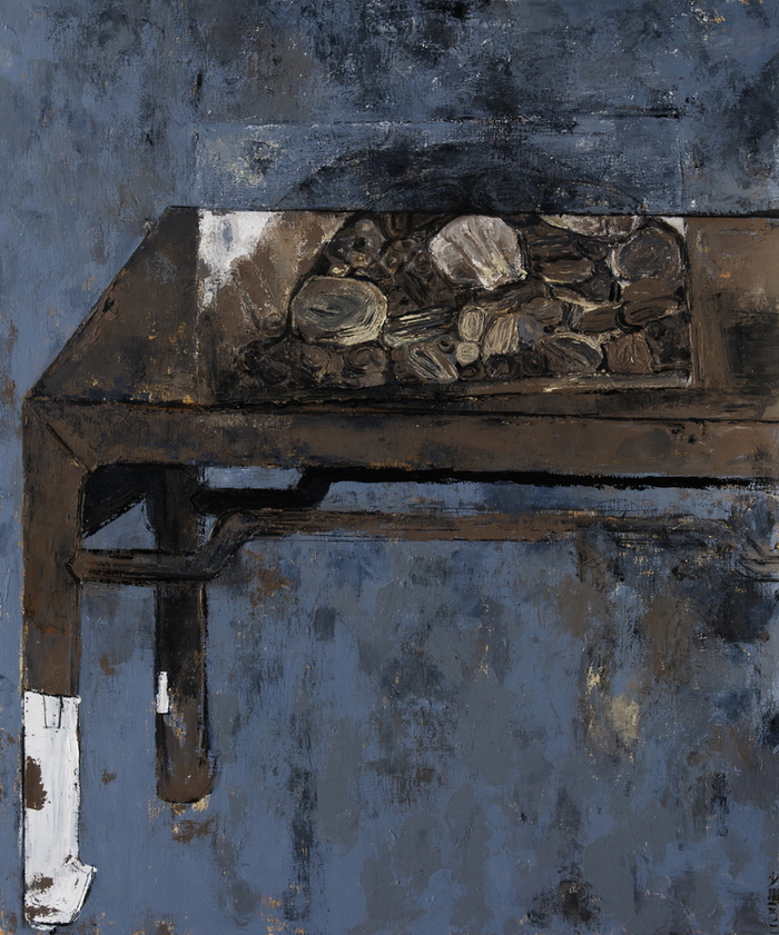 《长方桌和斯坦因的经书》(油画) 黄少鹏